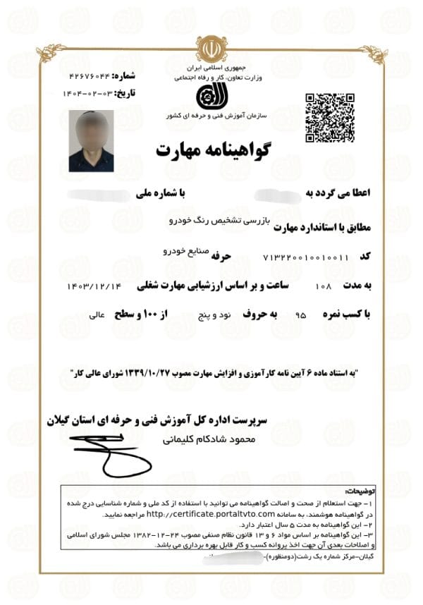 گواهینامه مهارت سازمان فنی حرفه ای کشور